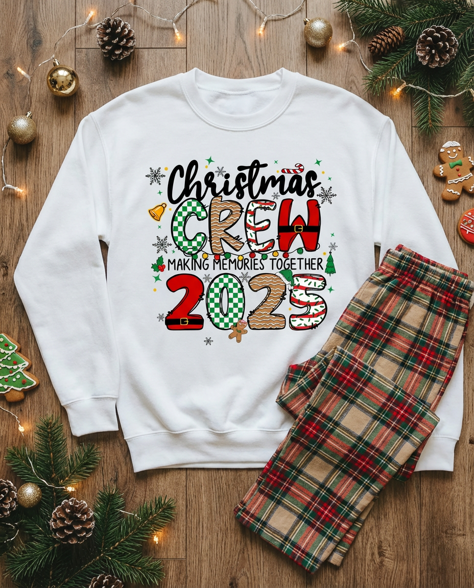 Join the Christmas Crew 2025 and celebrate the season in style! This festive sweatshirt is perfect for holiday gatherings, family photos, or quiet evenings spent creating cherished memories together. Designed for those who want to spread Christmas cheer with flair, it's the ideal choice for anyone looking to make a statement during the most wonderful time of year. Get yours now and become part of the holiday tradition!