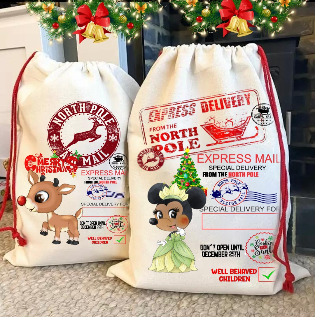 Don't waste time gift wrapping this holiday season! Santa Sacks are the perfect solution. Just place your gifts in the spacious "19 x 27" sack and you're all set! Make your life easier and more festive with our custom Santa Sacks. Order now and get ahead of the crowd!