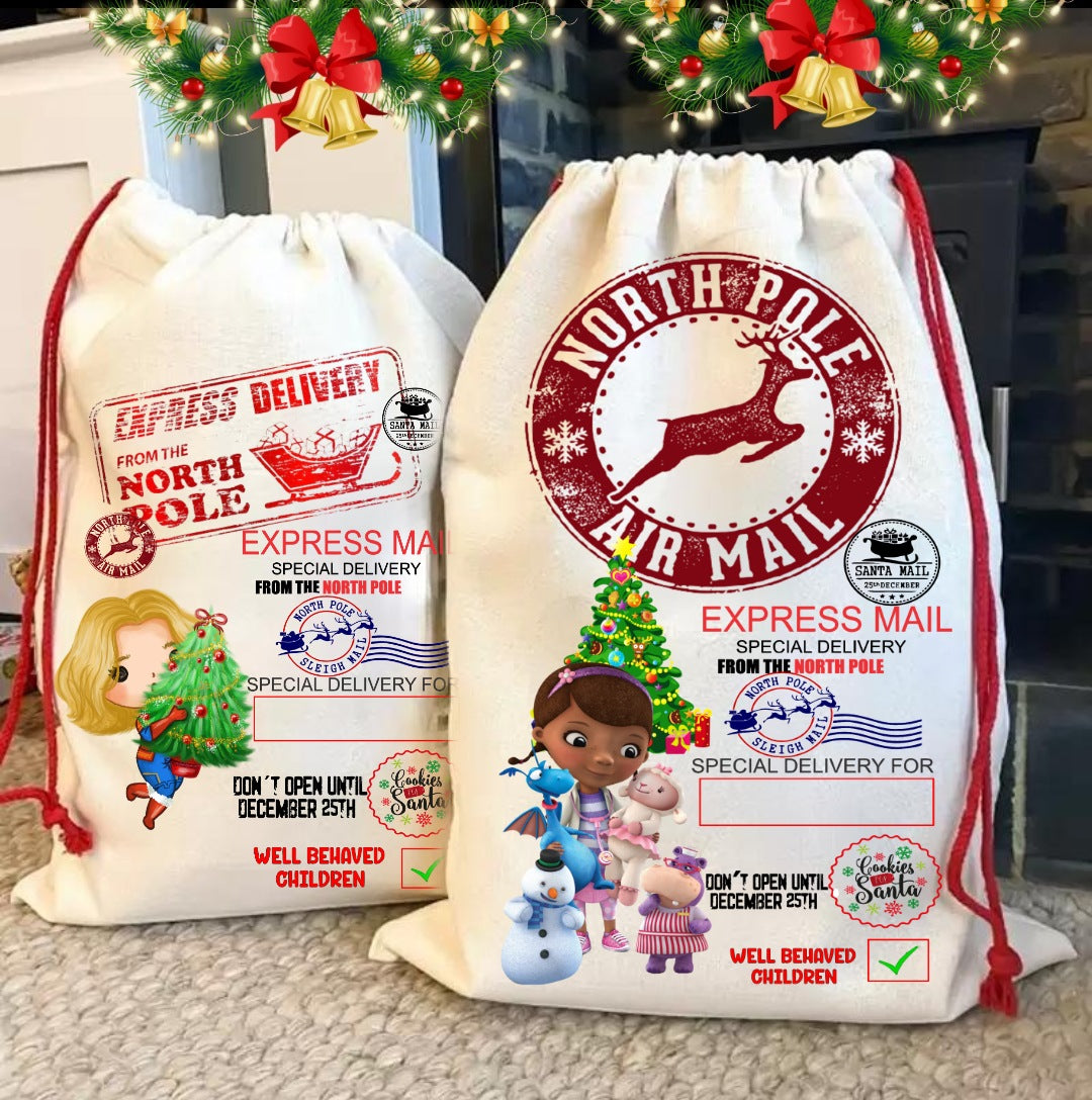 *Need a different character? We got you! Send us an email or complete the order form above with the character of your choice, child's name to be included on the sack and we'll take care of the rest.